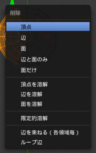 「X」キーを押し、表示されたメニューから「頂点」を選択して、選択中の頂点を削除します。