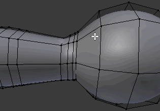 腕の先端の頂点を全て選択し、テンキーの「1」キーで正面のビューにします。「S」キーで下図のように先端を少し細くします。